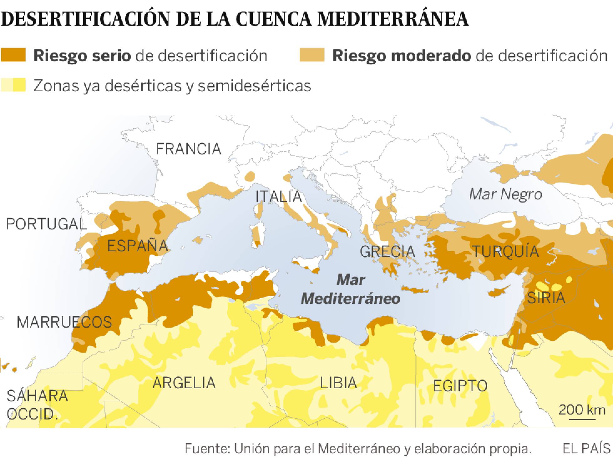 Se quiera o no, 500 millones de personas de tres continentes están unidas por un mismo problema: el cambio climático. La cuenca del Mediterráneo es uno de los puntos calientes de esta crisis global y algunos de sus impactos “golpean” a esta región de “forma más dura que a otras partes del mundo”, apunta el profesor Wolfgang Cramer, director científico del Instituto Mediterráneo de Biodiversidad y Ecología, radicado en Francia. Por ejemplo, el aumento de la temperatura de la región mediterránea ha llegado ya a los 1,5 grados respecto a los niveles preindustriales, lo que supone que el calentamiento en esta cuenca es un 20% más rápido que en la media del planeta.