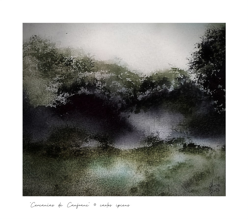 ‘En las cercanías de Canfranc’ (Pirineo Oscense, Mayo de 2019). En Baohong Masters’ Watercolour Paper. _ Lunar Black y Undersea Green de Daniel Smith y Turquesa de Cobalto de Windsor and Newton_