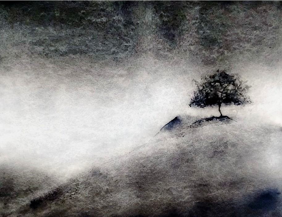 Este árbol solitario en la cima, rodeado de bruma, quiere ser un símbolo de resistencia serena: se alza sin aspavientos, sin reclamar nada, simplemente existiendo con firmeza en medio de un mundo que lo envuelve de misterio y soledad. La niebla lo acaricia como si lo protegiera, y al mismo tiempo lo aísla. Esa tensión entre fragilidad y fuerza, entre vacío y presencia, le otorga una belleza poderosa.