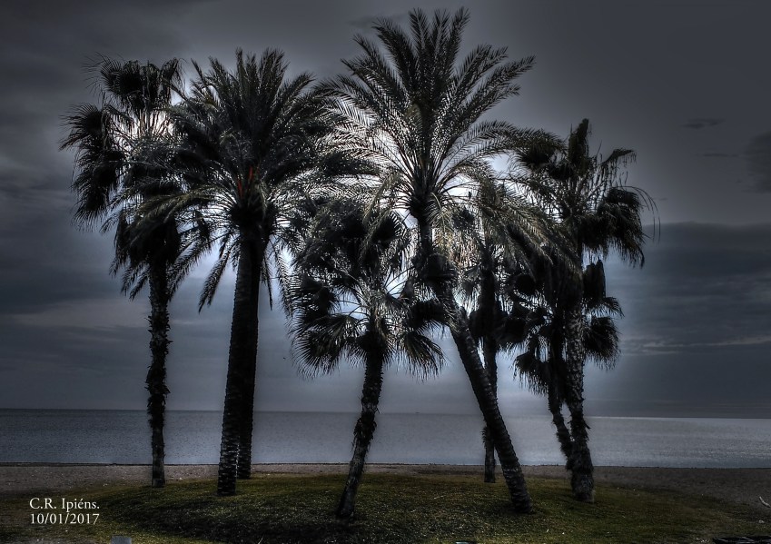 Era esta mañana, cuando estas palmeras, como recién llegadas de un "wadi" de oriente, se hicieron un fuego de artificio para iluminar su sed, para verdear este Mar de Sur que mostraba en su calma todo su abismo. Yo también me iluminé de ellas… inundándome de un calor frío…de color azul. Luego leí poemas inexistentes…leí…